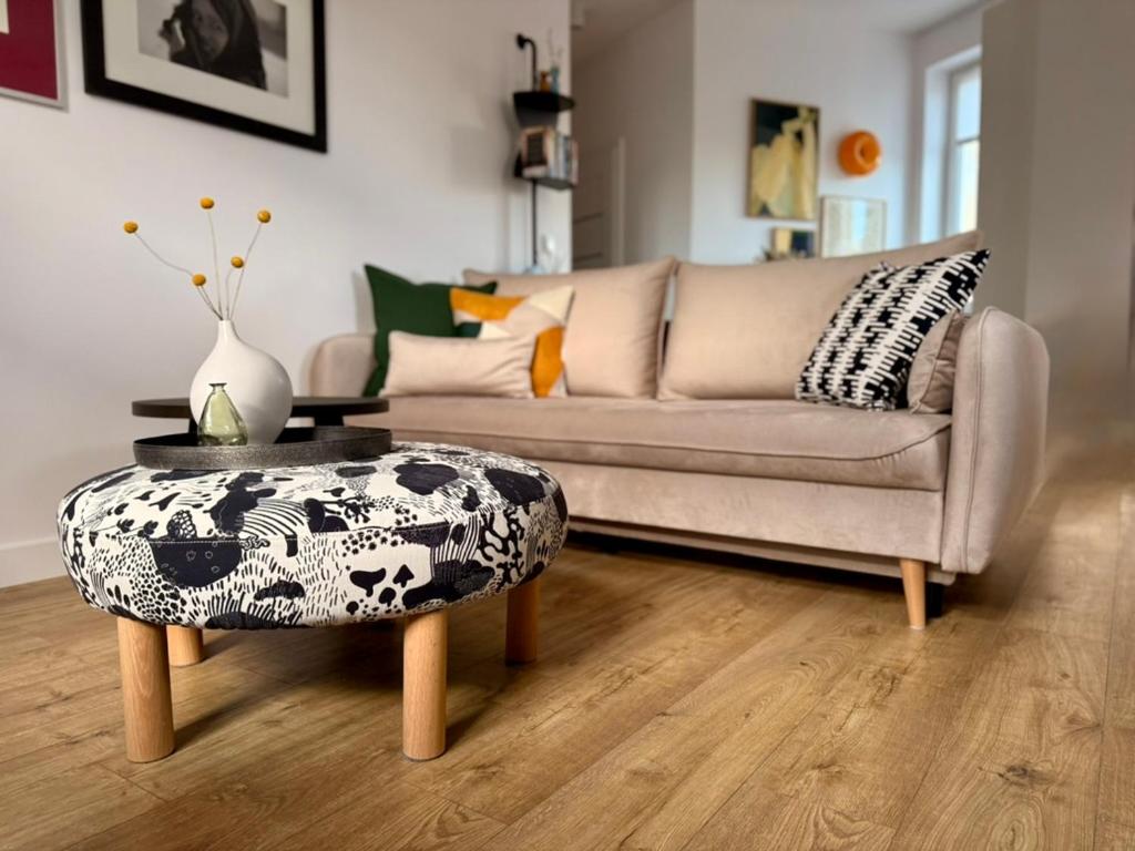 Apartament z 1 sypialnią. Meals can be prepared in the kitchenette, which features a refrigerator, a dishwasher, kitchenware and an oven. The apartment features a washing machine, a private entrance, a tea and coffee maker, a flat-screen TV with satellite channels, as well as city views. The unit has 3 beds. Apartament - 5 osobowy. Powierzchnia pokoju ok.: 49 mkw.